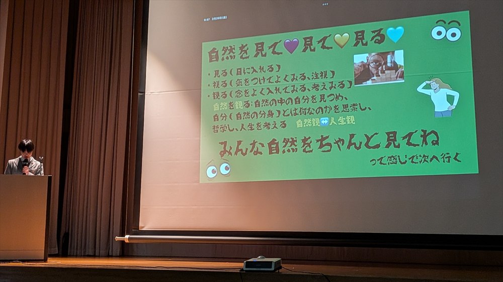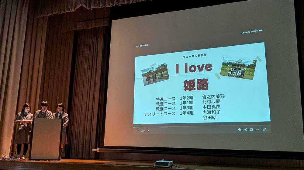 1日目の午前中は講堂で、高校1年生のプレゼンテーション部門(各ゼミ代表1組)と高校2年生のプレゼンテーション部門(未来講座・スモールスタート各ゼミ代表)の実践発表を行いました。2年生は審査により、上位5組が明日のプレゼンテーションに進みました。その5組のゼミは、舞台表現学、リユース学、公共政策学、彫塑学、みんなのサイエンス学と決定しました。明日は、保護者の皆様にもご覧いただけますので楽しみです。