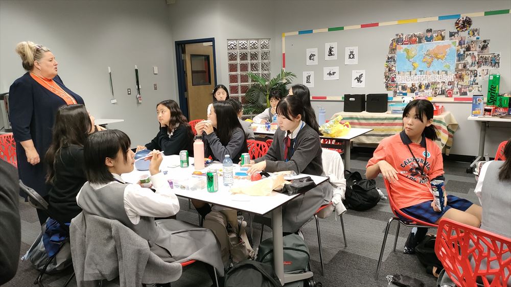 昼食はホスト宅から持参したランチボックスをバディ生徒とともに楽しみました。午後は特別授業として、バディとともにカナダの各地域について学ぶ英語の授業を体験しました。
