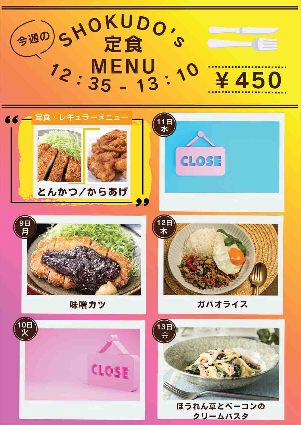 2/9~2/13の食堂メニュー(日替わり定食)