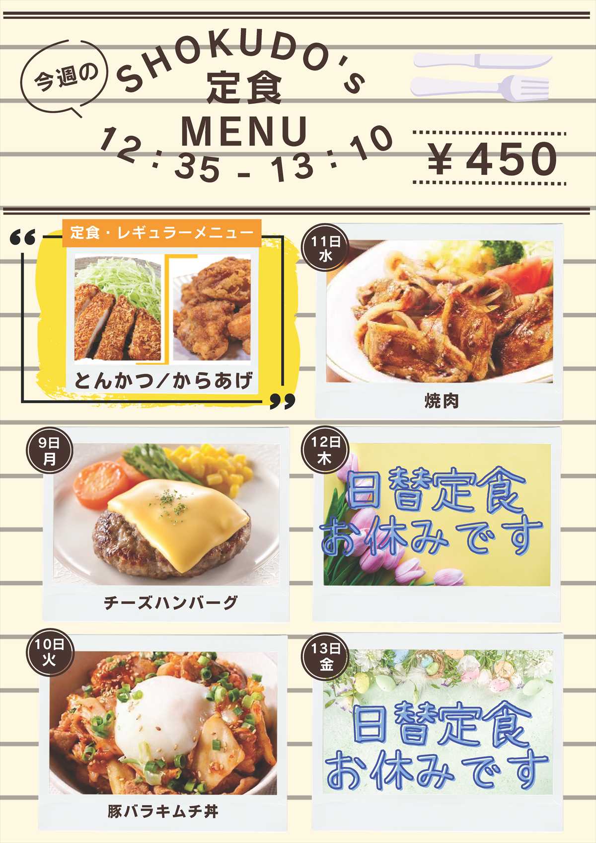 3/9~3/13の食堂メニュー(日替わり定食)