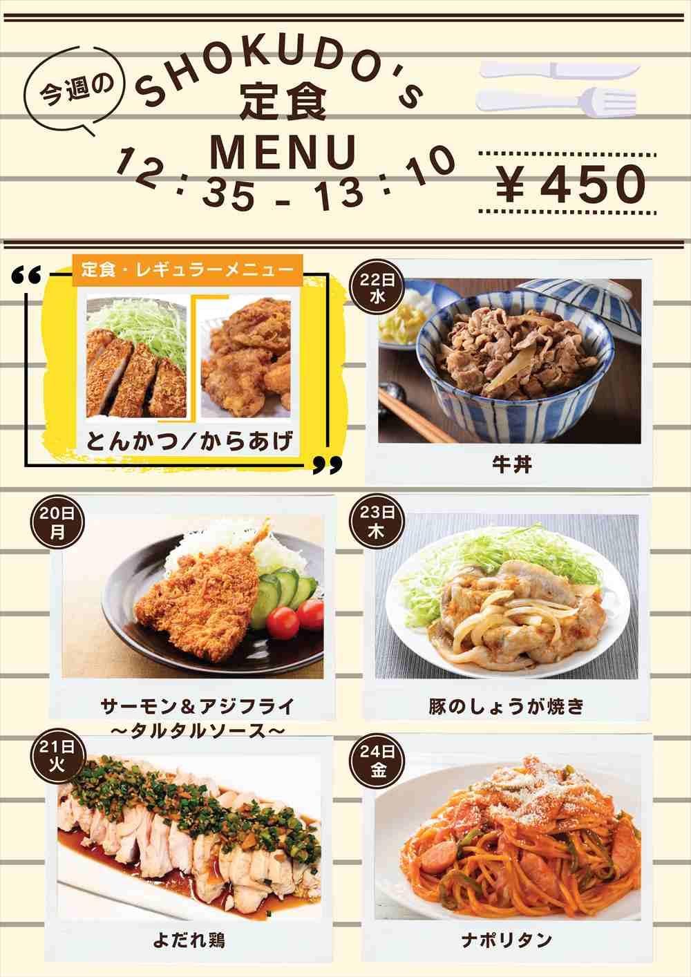 4/20~4/24の食堂メニュー(日替わり定食)