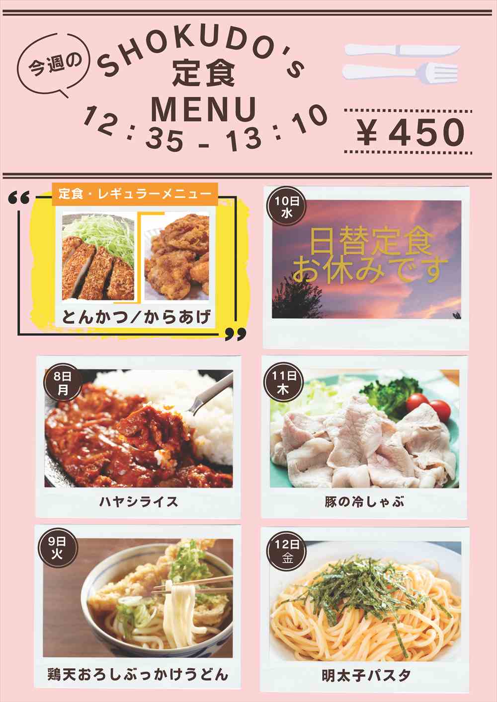 9/8~9/12の食堂メニュー(日替わり定食)